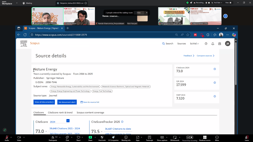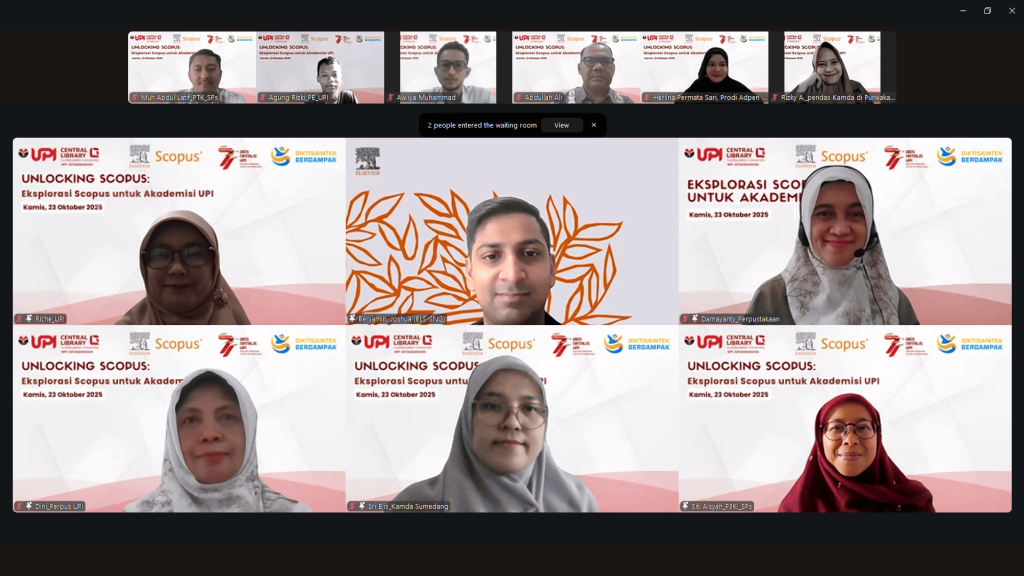 Bandung, 23 Oktober 2025. Perpustakaan Universitas Pendidikan Indonesia (UPI) Bandung sukses menyelenggarakan kegiatan daring bertajuk “Eksplorasi Scopus untuk Akademisi UPI” pada Kamis, 23 Oktober 2025. Kegiatan ini merupakan hasil kolaborasi strategis antara Perpustakaan UPI dan Elsevier, sekaligus menjadi bagian dari tindak lanjut program Trial Access Scopus yang tengah dibuka bagi seluruh sivitas akademika UPI.